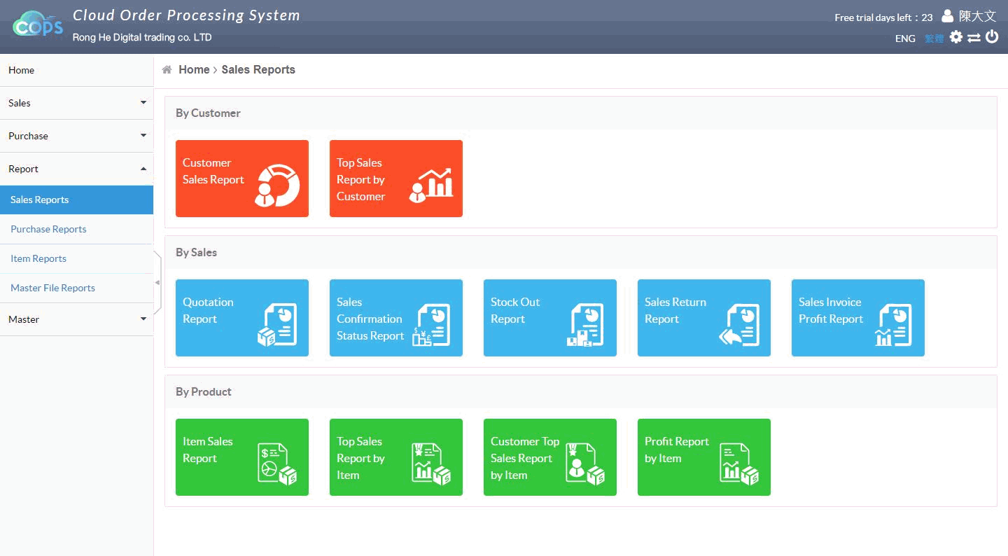 Transactions: Create different documents through our order processing system, such as quotations, sales contracts, invoices / delivery notes, sales returns, purchase orders, receipts, purchase returns